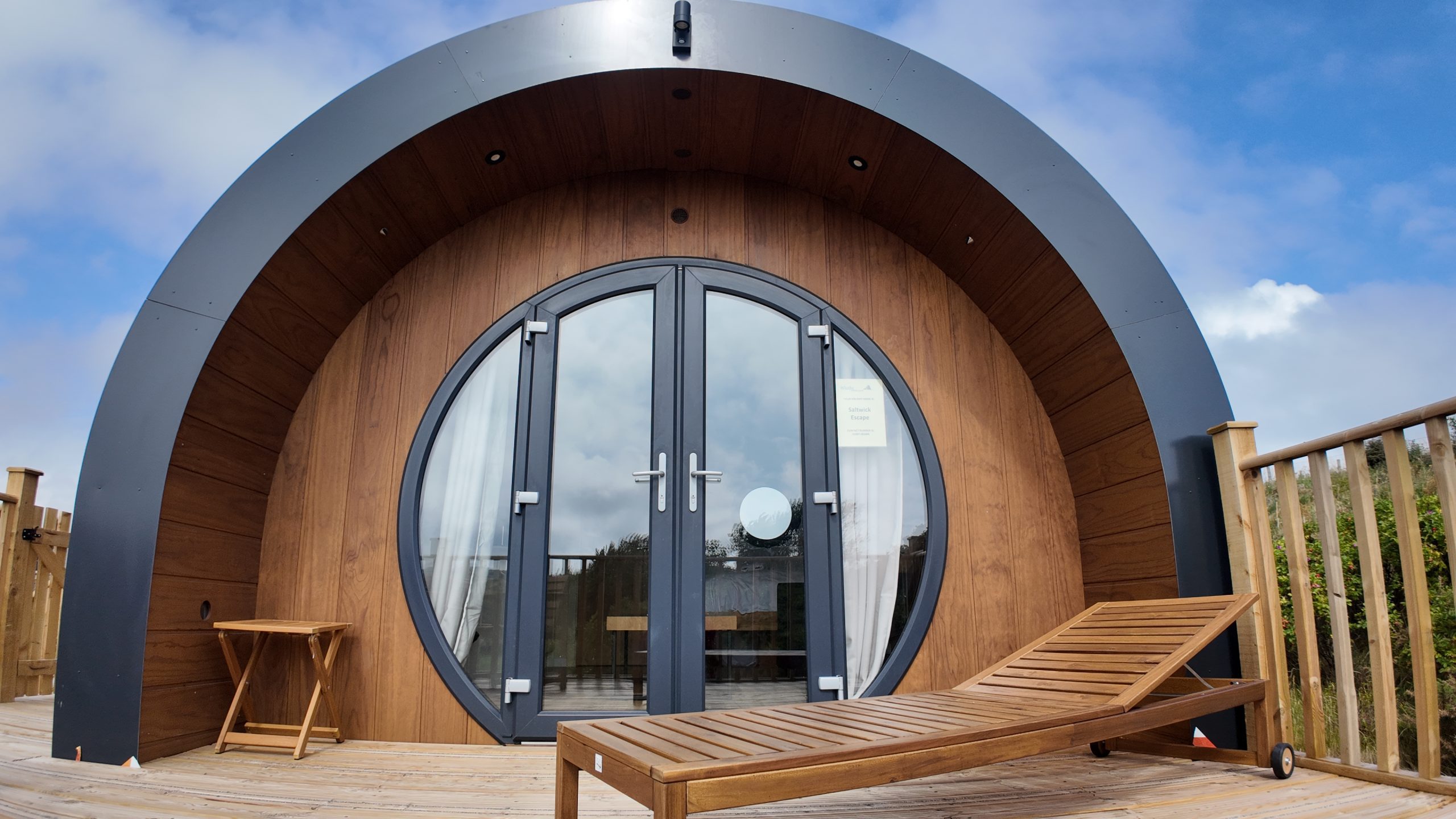 This glamping pod has all the features of an escape away from the norm, with a private hot tub, spacious open plan layout, and scenic location. The main living area hosts the double bed and sofa bed as well as the kitchenette with two burner hob, microwave, air fryer and mini fridge.